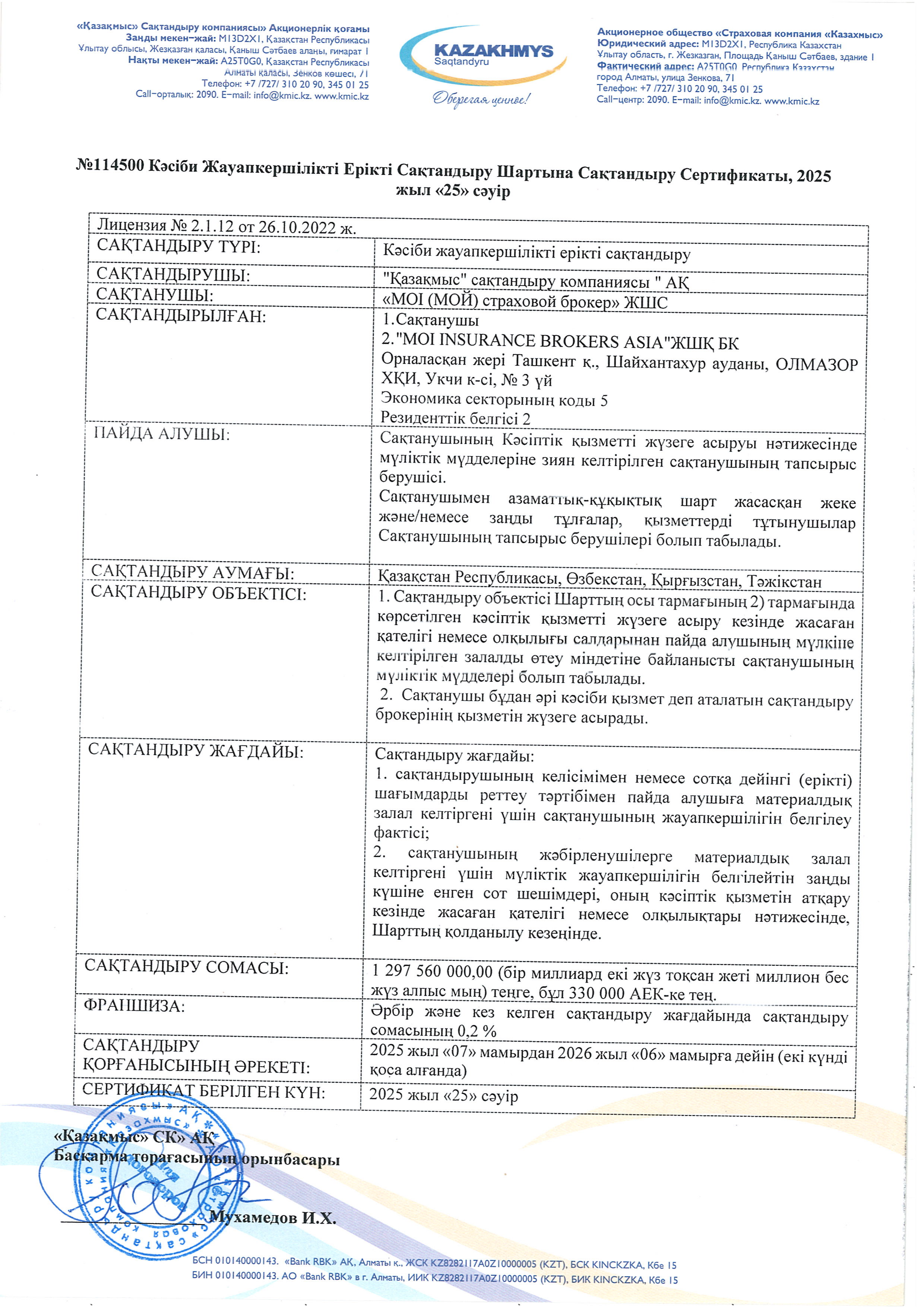 ЛИЦЕНЗИЯ ЖӘНЕ СЕРТИФИКАТТАР
